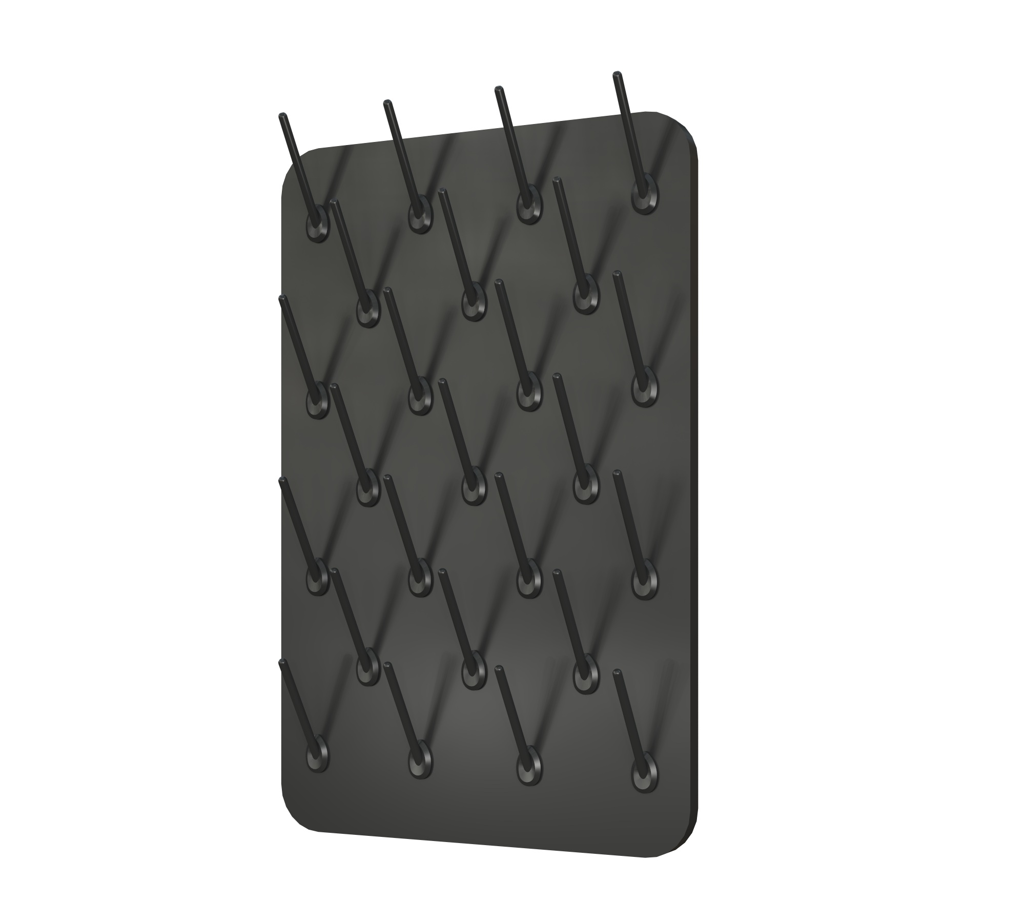 Black Phenolic Peg Board, Wall mounted, 3/4″ x 30″h x 20″w (nominal) with 25 black pegs, no drip tray, includes mounting hardware.