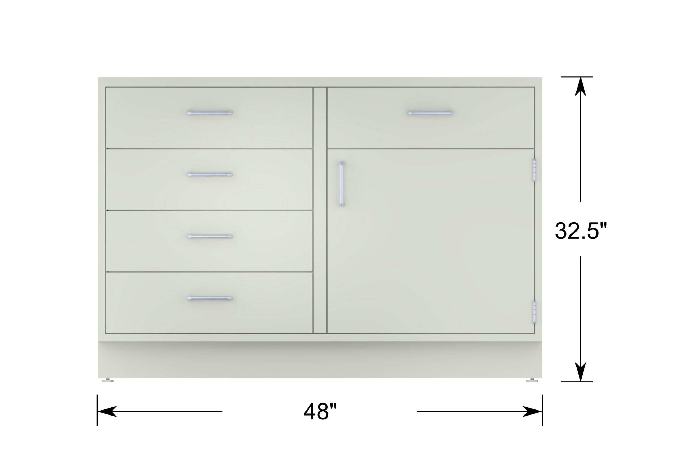 Steel Base Cabinet, 48″ Wide x 32.5″ Tall x 22″ Deep, 1 Door, Right Hand Swing / 5 Drawers, ADA Height, Glacier White.